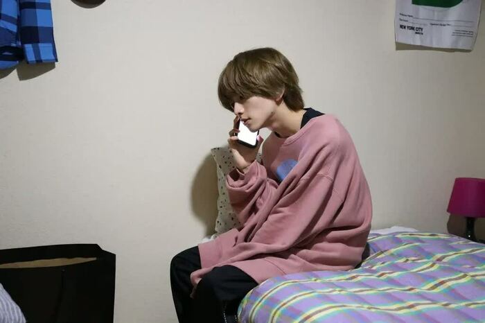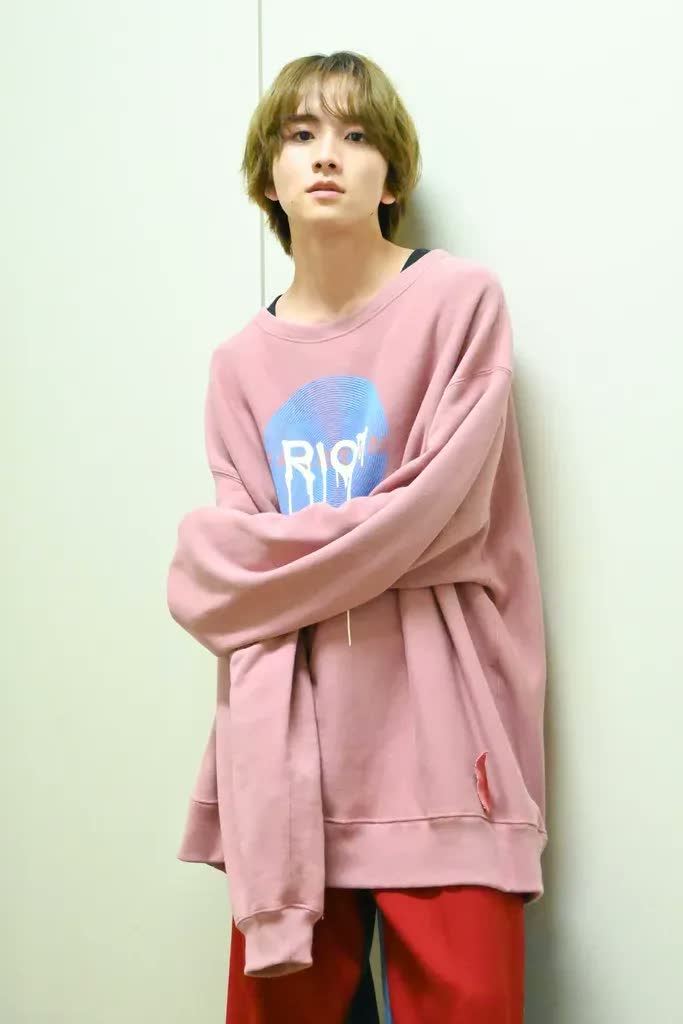 トップスは襟ぐりが広いので、中にタンクトップを着ています。“見せタンクトップ”です。めちゃくちゃオーバーサイズなトップスですが、シルエットがすごくキレイで、僕自身もかわいいなと思います。第3話で着ていたインナーと同じブランドなので、光のこだわりが見られますね。