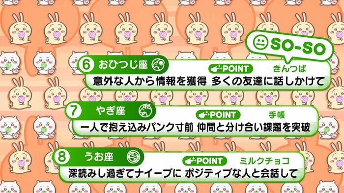 『めざましテレビ』で放送中の「ちいかわ占い」 テレビ放送がない日はお休みで、月~土:朝7時以降に更新予定です。