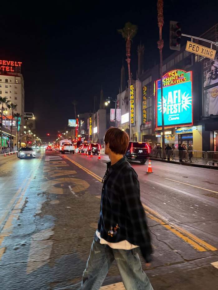 そんな可愛らしいシャツを身にまとい、ハリウッドの街を歩く大倉さん。横断歩道を渡る姿や…。