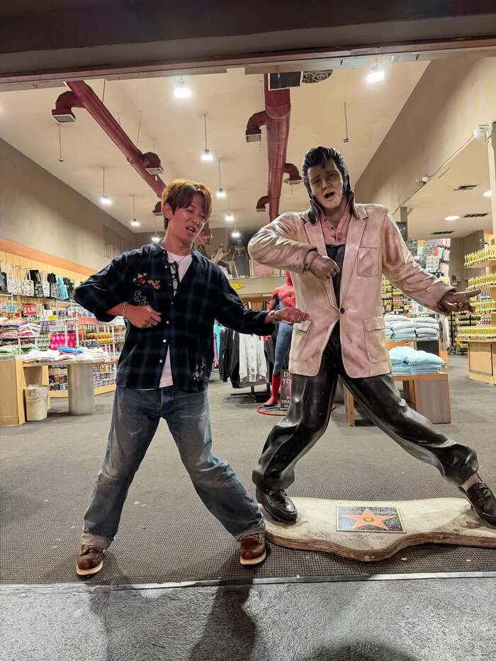 さらに店頭に飾られたあの”超大物”エルヴィス・プレスリーの特大フィギュアの横に立つ大倉さんは、ギターを持つようなポーズをしたフィギュアと同じポーズを取ったりと、ハリウッドをこれでもかと満喫していたようでした。