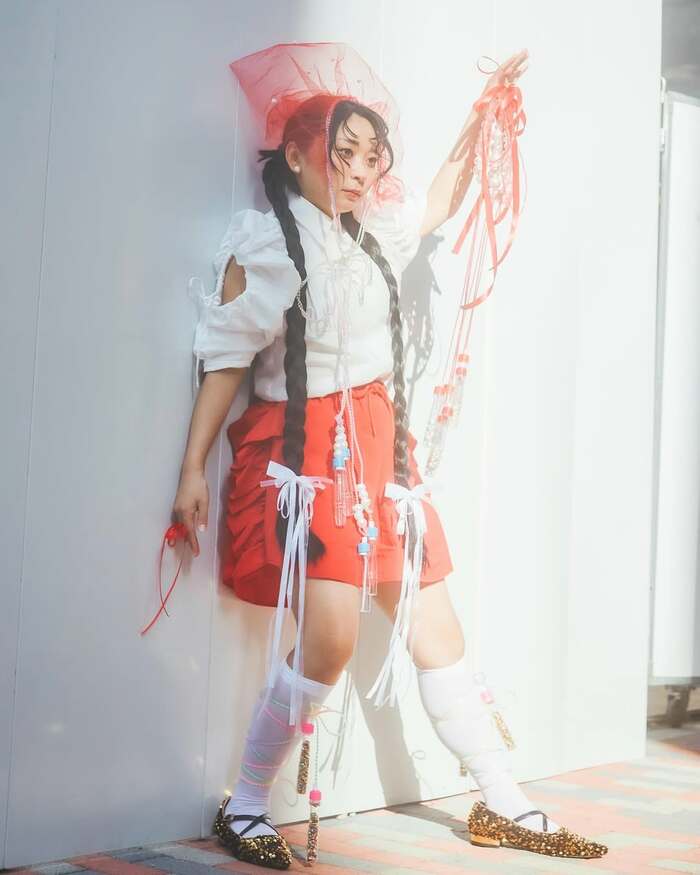 今回の取り組みでアンゴラ村長さんは「私が、スタイリストさんとなにか一緒に作るならやってみたかったのが「なわとび」を衣装に取り入れることでした!」と、こだわりのアイテムを紹介。