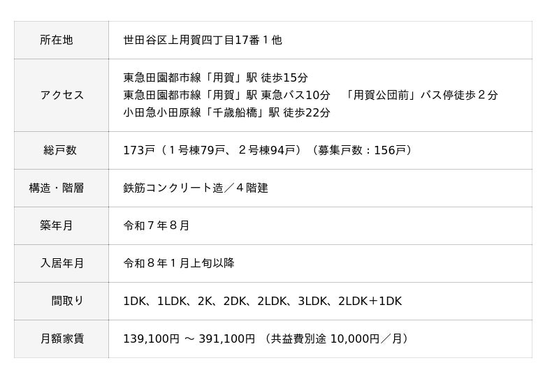 JKK東京(東京都住宅供給公社:東京都渋谷区、理事長:浜 佳葉子、以下「JKK」)は、令和7年10月16日(木曜日)から10月30日(木曜日)まで、世田谷区の新築賃貸住宅「カーメスト用賀馬事公苑」の入居者募集を実施しました。