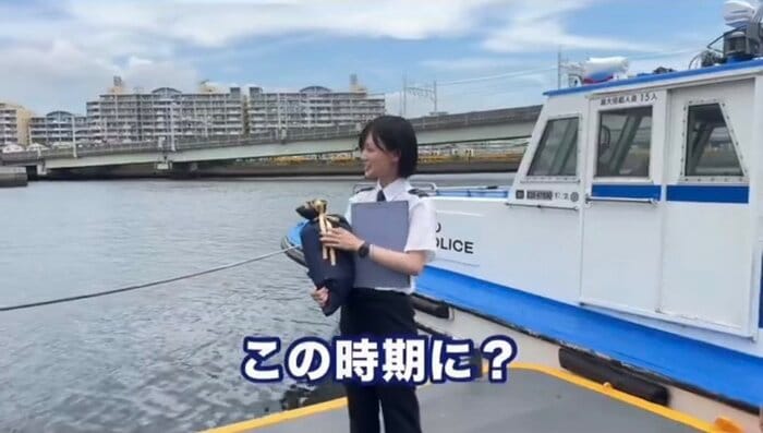 場所は、撮影現場である船着場。礼子が操縦する警備艇「あかつき」が停まっています。