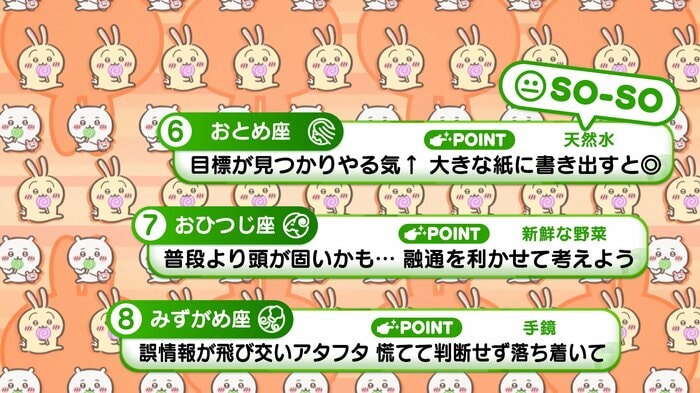 『めざましテレビ』で放送中の「ちいかわ占い」 テレビ放送がない日はお休みで、月~土:朝7時以降に更新予定です。