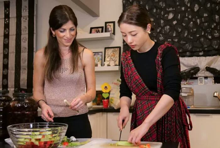 キュウリを切ることを頼まれ、小さな包丁を渡された石原は「日本の切り方でもいい?」と言いながら慣れた手つきで包丁を使ってみるが、キュウリはつながったまま。「あ、そうか!(包丁の)身幅がないからだ!やっぱり来てみないとわからないね」と、キッチンでも文化の違いを発見した様子。