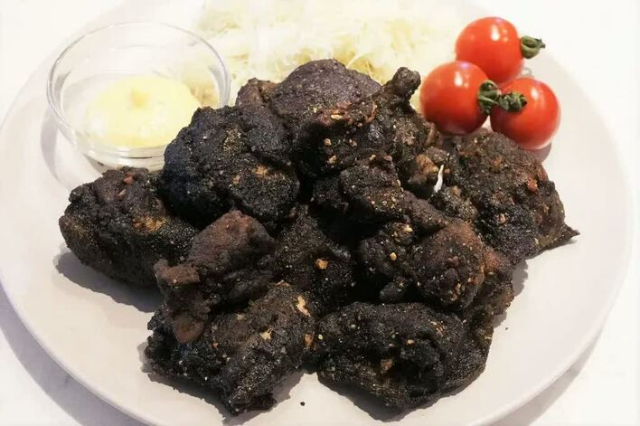 ハルコの部屋で、ハルコがいづみ(松本まりか)に「年増女がやってはいけない四か条」を突きつけたあと、見た目の黒さに「黒っ!」と驚きながら頬張っていたのが「黒からあげ」です。