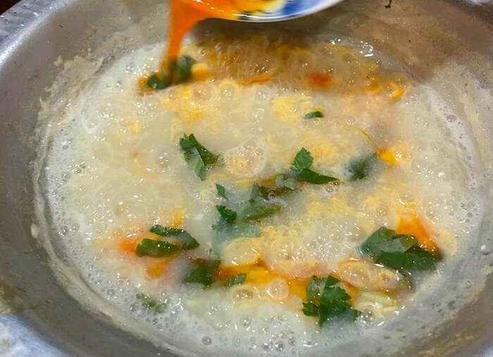 溶き卵を回しながらお鍋に入れており、あんこうのおだしが効いたスープに浮かぶフワフワの卵にも食欲をそそられます!