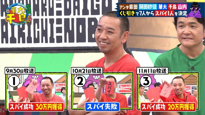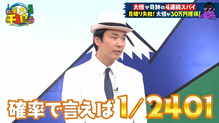 なんと、今回もまたスパイは大悟さん!4回連続スパイは「確率でいえば2401分の1です」(濱家)と明かされました。