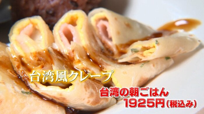 台湾の朝ごはんは、台湾風クレープなど屋台の定番メニューが一皿に(税込み1925円)。しかも、本場の味を忠実に再現。