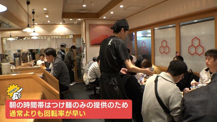 通常時はつけ麺や中華そばなど、様々なメニューがありますが、朝の時間帯はつけ麺のみを提供しているため、調理の時間を省くことができるといいます。