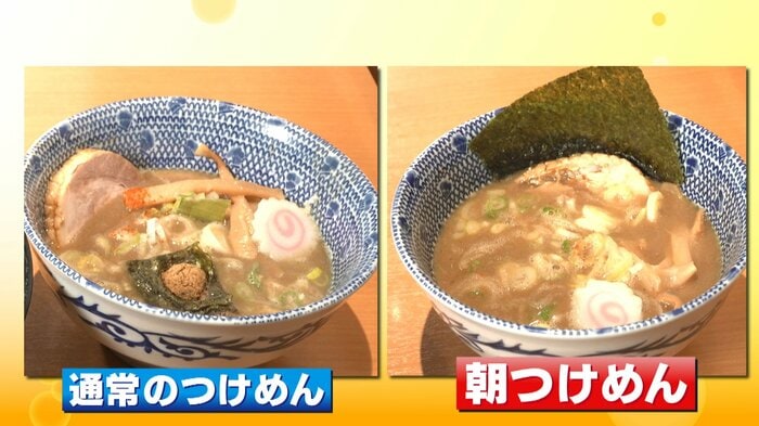 通常のつけ麺に比べ、朝食べやすいようにスープはあっさり仕様になっています。