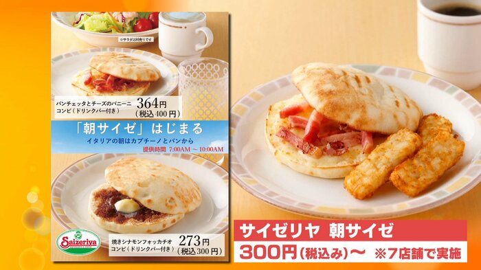サイゼリアでは2025年6月、ドリンクバーつきで税込み300円から食べられる「朝サイゼ」を開始。