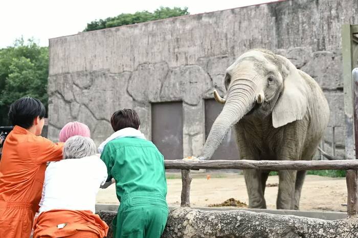 前回に引き続き、今回は埼玉県・東武動物公園でロケを実施。園内をめぐりながら、超特急が二手に分かれて「動物園の飼育係」を体験します。