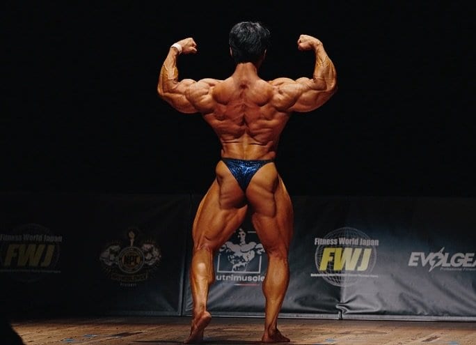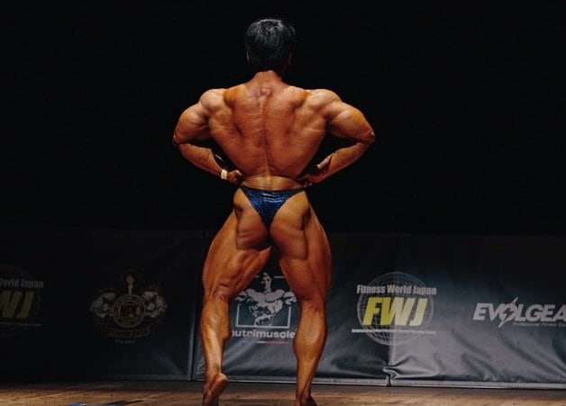 公開された写真には、ステージ上で後ろを向き、後ろ姿をカメラに見せている横川さんの姿が。横川さんは、両手を腰に当てて片足はつま先を立てるようにポーズを決めていて、逆三角形をした背中の筋肉は、まるで真ん中に鏡を立てて置いているかのように左右対称に盛り上がっていて、思わず圧倒されてしまいます。