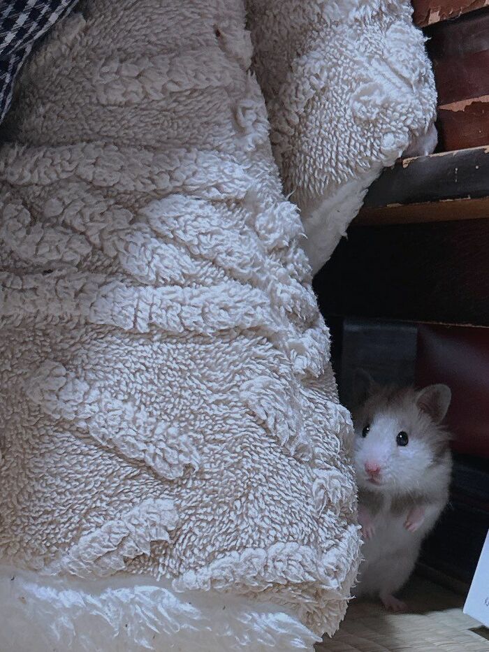 ひょっこり顔を出す姿にSNSからは虎の威を借る狐ならぬ「人間の威を借るハムスター!?」との声や「本当にハムスターって ちっこくて可愛い」「ひまわりの種で援護射撃してそう…」など多くの反響を呼んでいます。