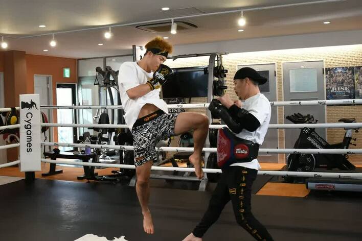 試合の時はやりませんよ(笑)アップの時にやります。リングの周りを走るとか、体を動かして、どんな場面でも動けるようにするのが大事なんです。三角蹴りは必殺技ではないですが、必殺技も用意しています。