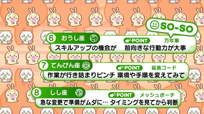 『めざましテレビ』で放送中の「ちいかわ占い」 テレビ放送がない日はお休みで、月~土:朝7時以降に更新予定です。