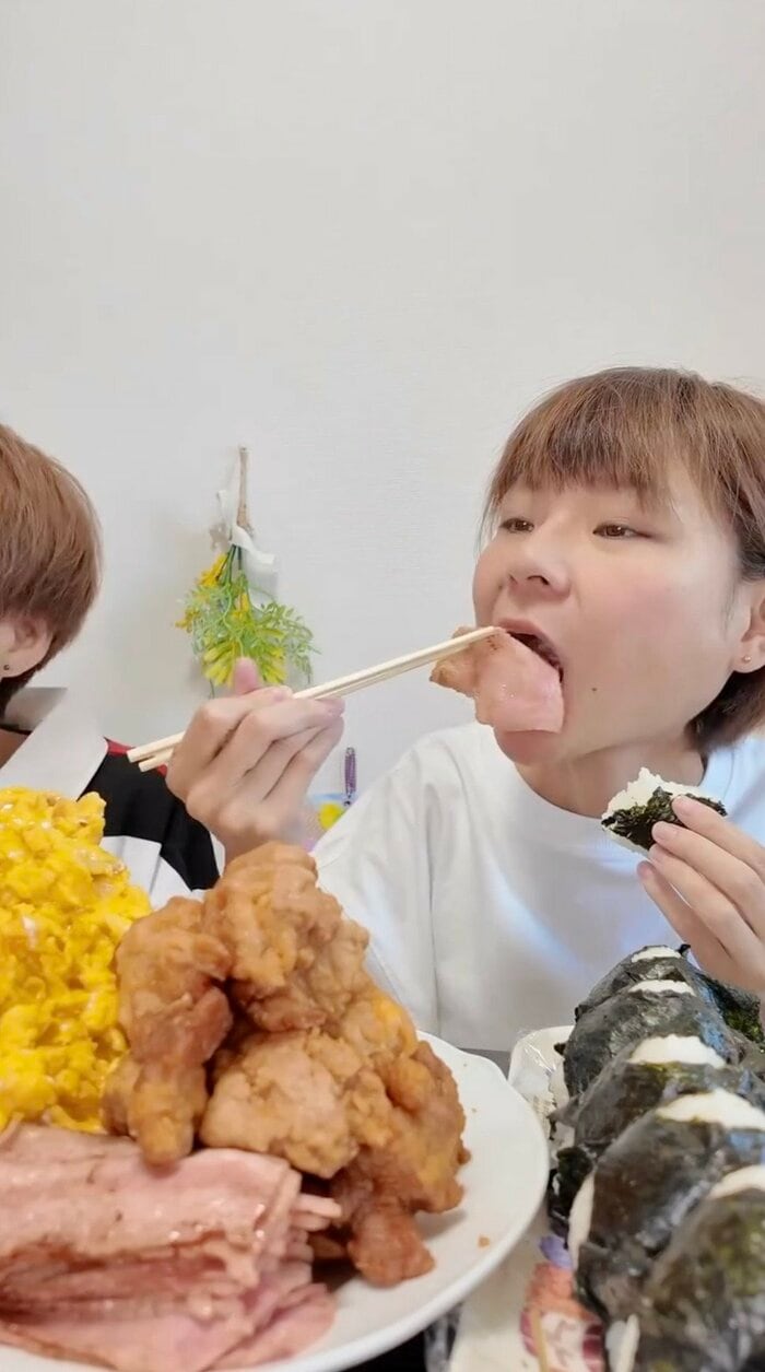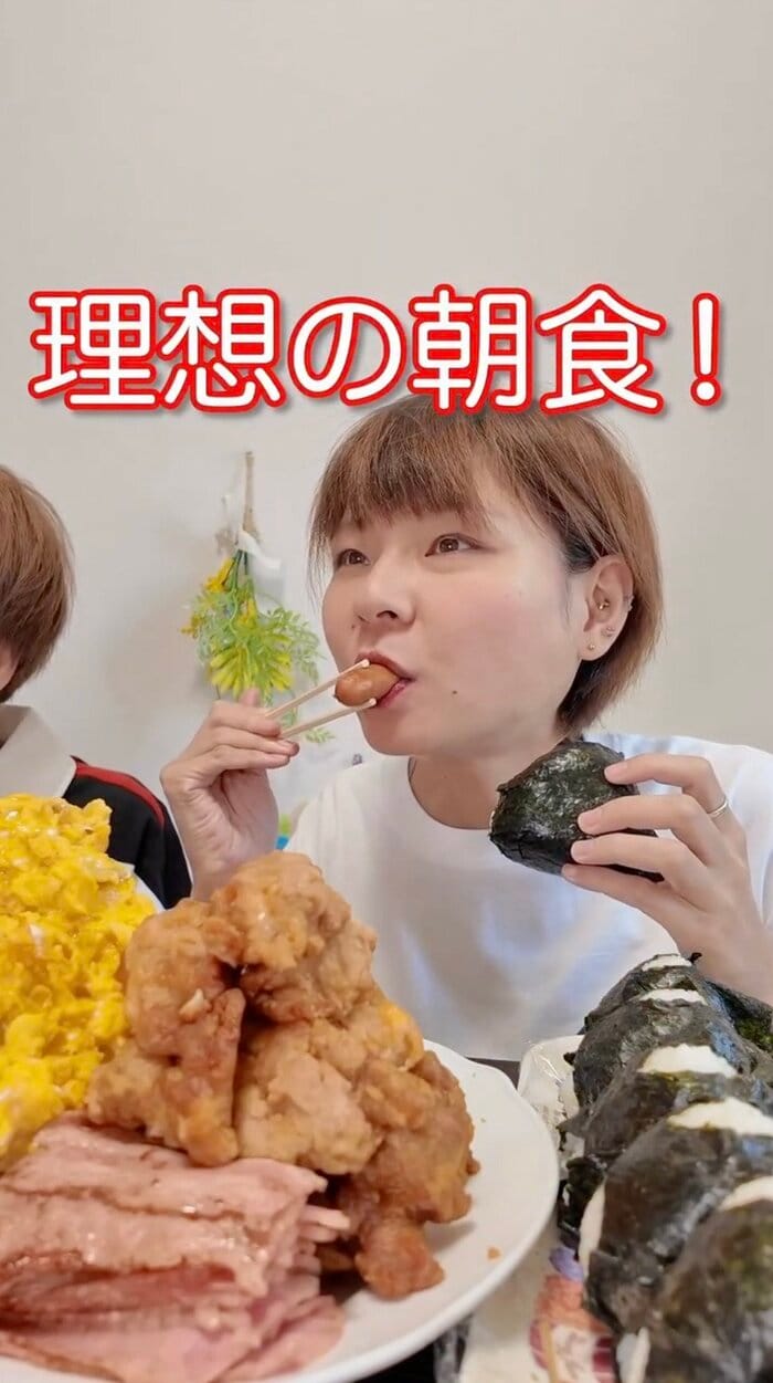 また、妹のあこさんのインスタグラムにも同じように動画が投稿され、そこには山盛り唐揚げと何枚も重ねられたベーコンが!ウインナーと卵だけじゃなかったのか…と驚くばかりです。
