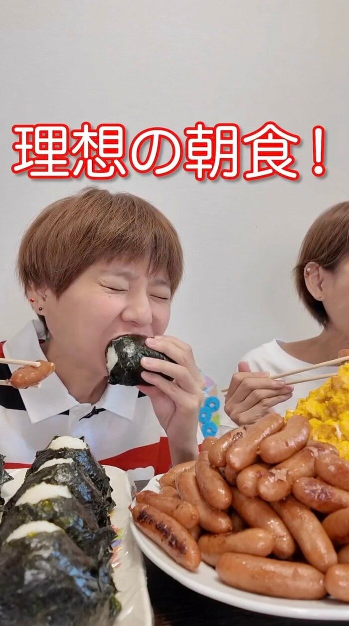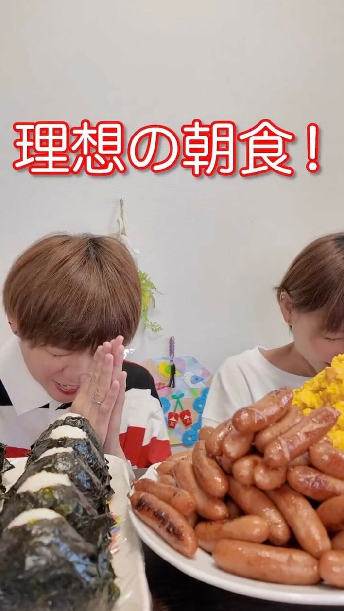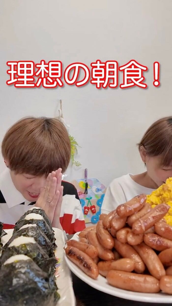 かこさんは「理想の朝食」とつづり、妹のあこさんと共に朝ごはんを食べる動画を投稿しました。