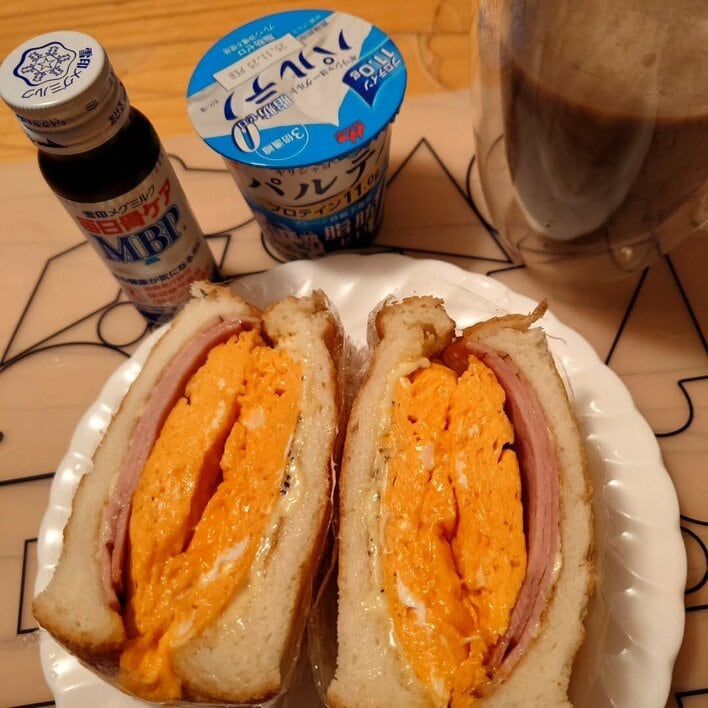 今回の投稿でも「今朝は卵3個の分厚いサンドです。」とこの日の朝食を公開。