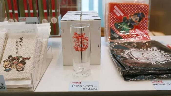 人気のオリジナルTシャツ、3人がライブ冒頭の乾杯時に使用する「ビアタンブラー」はロングセラー商品とのこと。