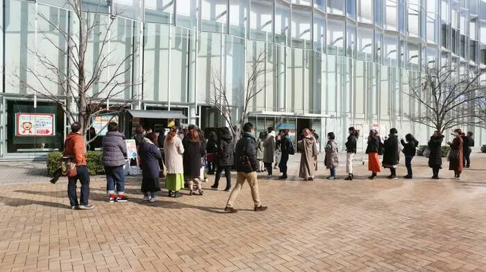 冬晴れのお台場・湾岸スタジオ。昼公演は12時開場13時公演開始だが、11時頃から入口の外には来場者の姿がチラホラ。