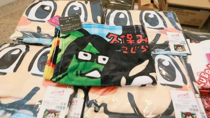人気商品は『つらい飴』(抹茶味)と手ぬぐい。スタッフの方のイチオシは久保が描きおろしたイラストが使用されたトートバッグだそう。