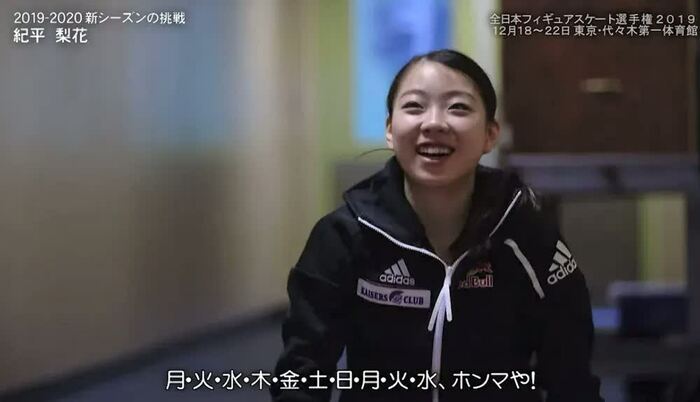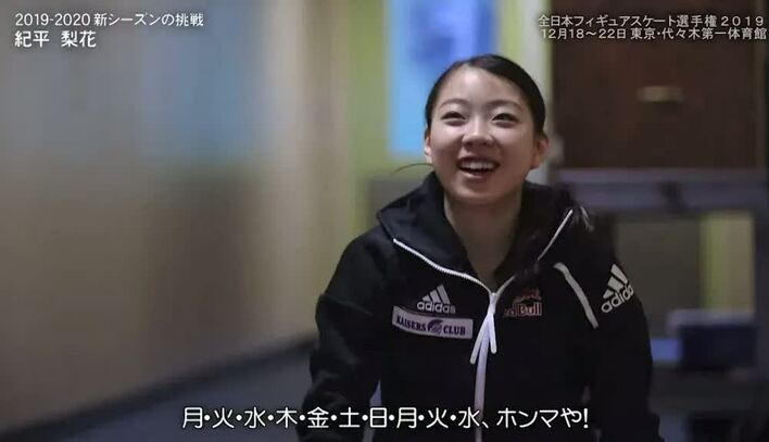 合宿を始めて10日経った頃の紀平選手は「そんなに経ってる?」と驚きながら、「日曜日に着いたから、月・火・水・木・金・土・日・月・火・水、ホンマや!」と笑った。