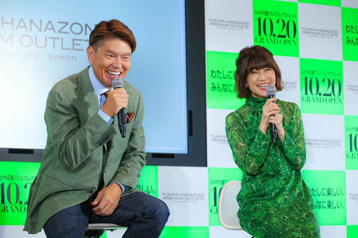 10月20日(木)より開業される「ふかや花園プレミアム・アウトレット」の記念イベントが行われ、ヒロミさんと松本さんが、愛犬・タロウくんとともに出席しました。