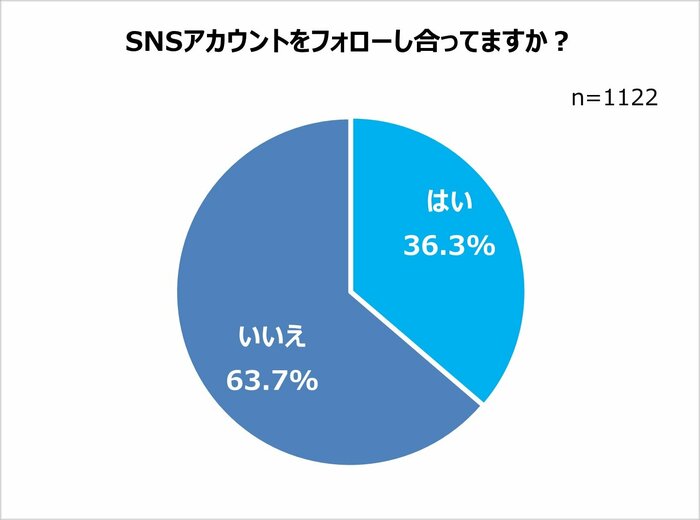 夫婦のSNS 相互フォロー率は36.3%。一方、20代の約7割はフォローし合っている。
