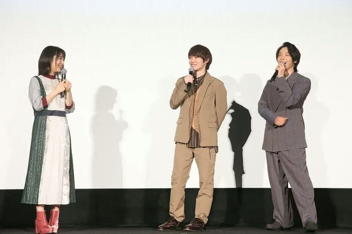 ミステリーエンターテインメント映画「屍人荘の殺人」の大ヒット舞台挨拶が、12月23日(月)に行われ、主演の神木隆之介、浜辺美波、中村倫也が観客にクリスマスプレゼントを配りながら登場した。