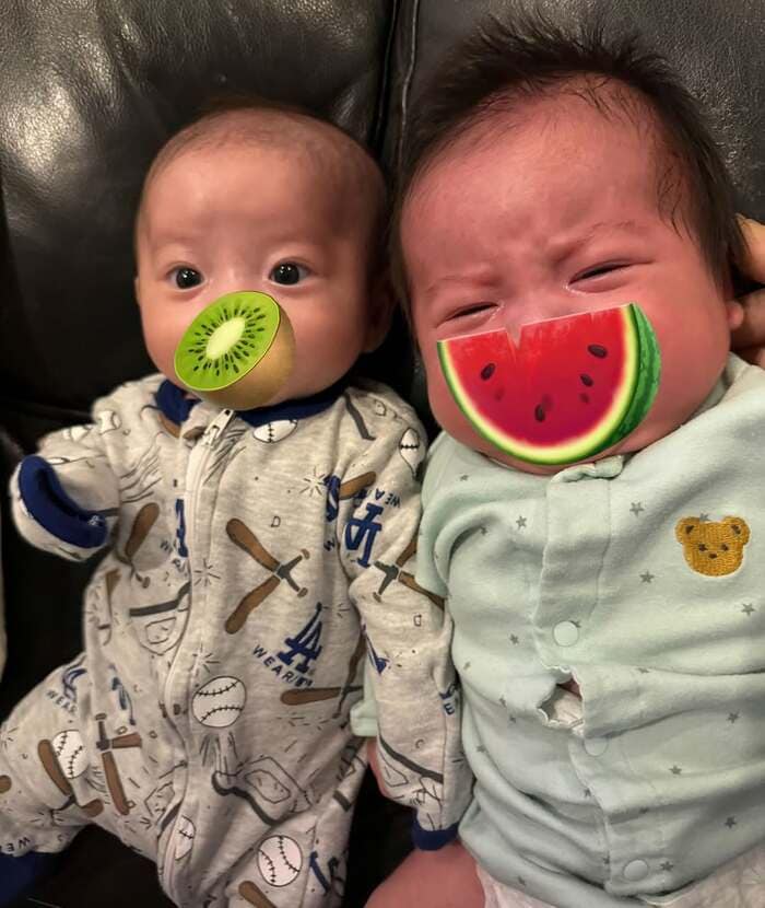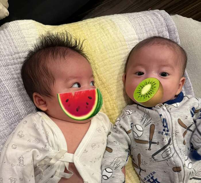 中川さんは先日、「兄が5020g 弟4402g まで大きくなってました!」と双子の体重を明かしていましたが、確かにお兄ちゃんの方が少し大きく見えますね。