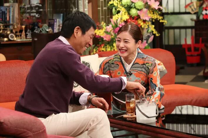 『さんまのまんま』初出演の有村も艶やかな着物で登場。「ずっと『さんまのまんま』に出演したいと思っていたんです」と、とびきりの笑顔をみせ、早くもさんまをメロメロに。