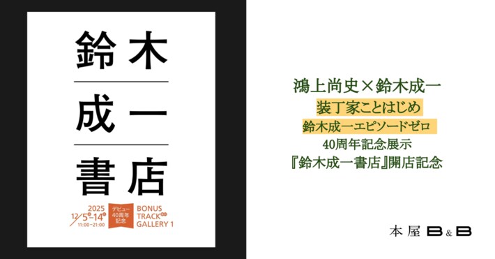 下北沢BONUS TRACK GALLERY 1にて開催される鈴木成一デビュー40周年記念展示「鈴木成一書店」開店記念イベント第5弾として、12月12日に鴻上尚史氏を迎えたトークイベントが開催決定