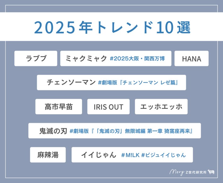 ■Z世代1,000人に聞いた今年流行ったこと・もの10選。「ラブブ」「イイじゃん」「ミャクミャク」などがランクイン!