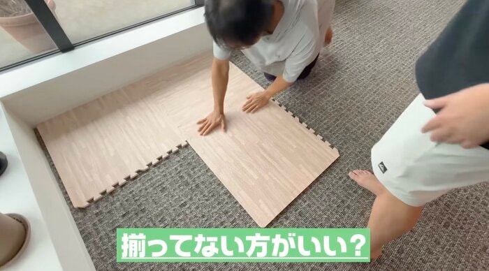 新しいマットには木目のようなものがプリントされており、これを揃えるか揃えないか問われた山本さんは「気にしないよ」と回答。しかし西野さんは「いや、気にするでしょ」と山本さんの意見を一蹴り。そして「揃ってない方がいいんじゃないですか?」と、しっかりと自分の意見を主張する西野さんに、「全然旦那の意見が…」と友人からもツッコミが入ります。