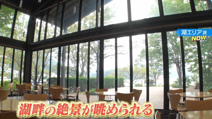 湖エリア派③一面ガラス張りで湖畔の景色が楽しめるレストラン