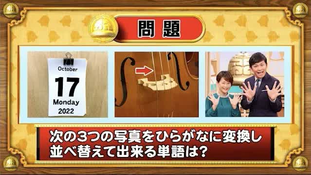 最初は「脳ミングアップクイズ」から、シャッフル写真の問題。次の3つの写真をひらがなに変換し、並べ替えて出来る単語は何でしょうか?