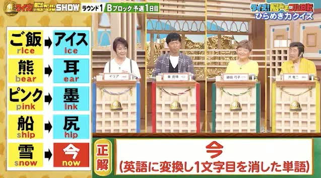 正解は「今(英語に変換し1文字目を消した単語)」。イリアさんと東さんが正解!