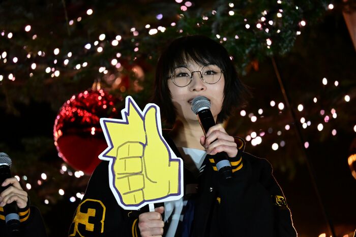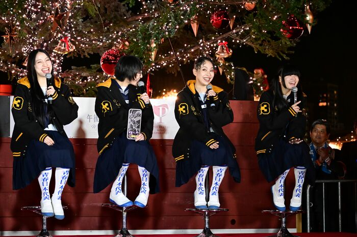 そして、「12月25日にフィンランドでライブしたいです。新しい学校のリーダーズとして。それが一番わしららしい、かっこいい、美しい過ごし方なんじゃないかと。それで4人でリンゴパイとか食べて、チアーズ(乾杯)と。したいです~。」と野望を明かし、点灯式イベントは大盛り上がりを見せました。