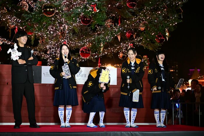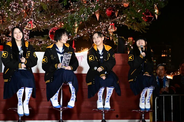 そんな会場内でひときわ存在感を放つ、過去最大となる高さ約12mの巨大ツリーの点灯式イベントに、MIZYUさん、RINさん、SUZUKAさん、KANONさんの4人からなるアーティスト・新しい学校のリーダーズが登場。