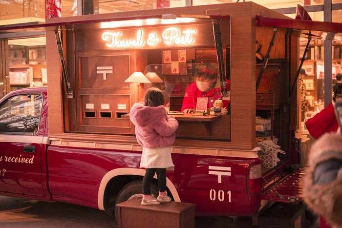 会場内に移動型郵便局「ポストカー」を特設され、エリアで書いた手紙をポストに投函することができます。