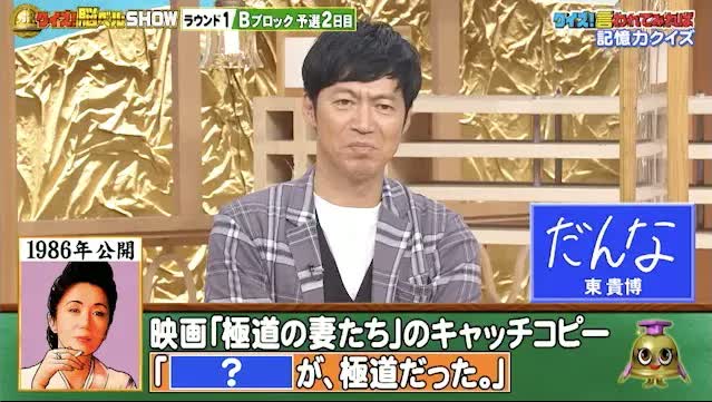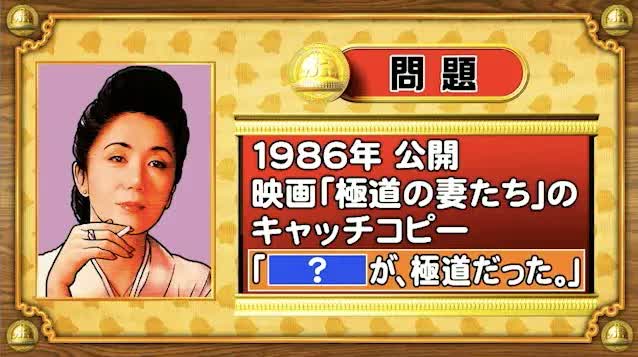 最後は、名作映画の問題。今から36年前の1986年に公開された、岩下志麻さん主演の映画「極道の妻たち」のキャッチコピー「[?]が、極道だった。」。「?」に入るのはどんな言葉でしょうか?