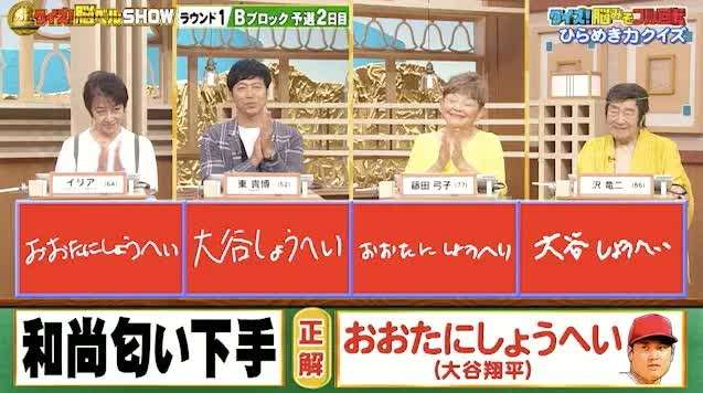 正解は「おおたにしょうへい(大谷翔平)」。またもや全員正解!