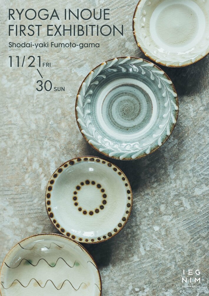 株式会社ロースター(本社:東京都新宿区、代表取締役:大崎安芸路)は、11月21日(金)より、熊本・小岱山麓の伝統窯「ふもと窯」で三代目として作陶を続ける若手陶芸家・井上亮我(いのうえりょうが)の初個展を、東京・渋谷区西原のフォーククラフトショップ『IEGNIM(イグニン)』にて開催します。