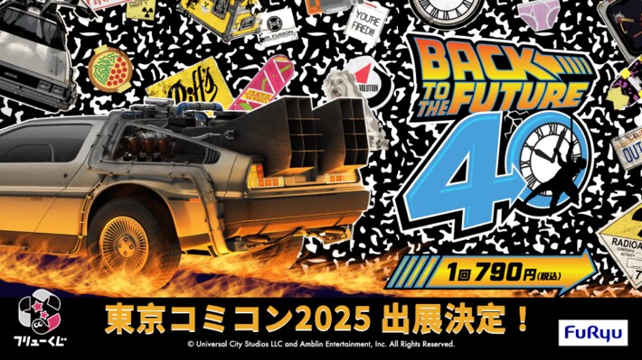 フリューのブースでは、10月24日(金)より発売中の『フリューくじ バック・トゥ・ザ・フューチャー』の展示や40周年記念イラストを使ったフォトパネルを設置します。40周年仕様ナンバープレートの「TIME MACHINE」ダイキャストモデルや「アインシュタイン」のぬいぐるみなど話題の商品を間近でご覧いただくことができ、くじはその場で購入することも可能。さらに、購入回数に応じて「東京コミコン2025」会場限定の豪華グッズがもらえるノベルティキャンペーンも実施します。