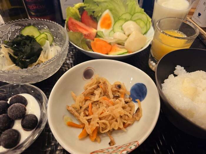今回の投稿で高橋さんは「お早うございます」と元気よく挨拶し、「今朝はサラダと和食テイスト」とつづり、朝食を公開しています。