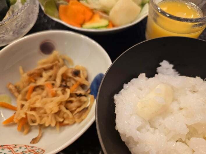 手前には、ほかほかに炊き上がった「ユリ根ごはん」と、小さなお皿に「切り干し大根」を用意しています。ご飯と一緒にパクパクと食べ切っちゃいそうです。