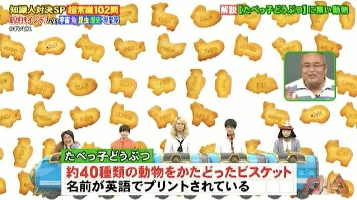 「たべっ子どうぶつ」という商品名を答える問題では、地理担当の村瀬哲史先生が解説を加えてくれました。