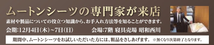期間中、シーツをお試しいただいた皆さまには、ささやかながら粗品をご用意しております(なくなり次第終了)。ご来場を、心よりお待ちしております。